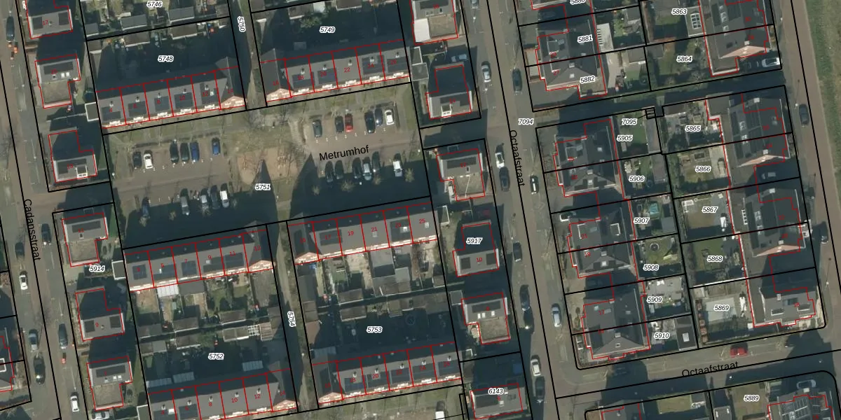 Metrumhof 25 is gelegen op kadastraal perceel RML00H5753. Deze kadastrale aanduiding is uniek en wordt gebruikt door het Kadaster om eigendomsrechten en andere zakelijke rechten vast te leggen. Het perceel maakt onderdeel uit van de kadastrale gemeente Rosmalen.