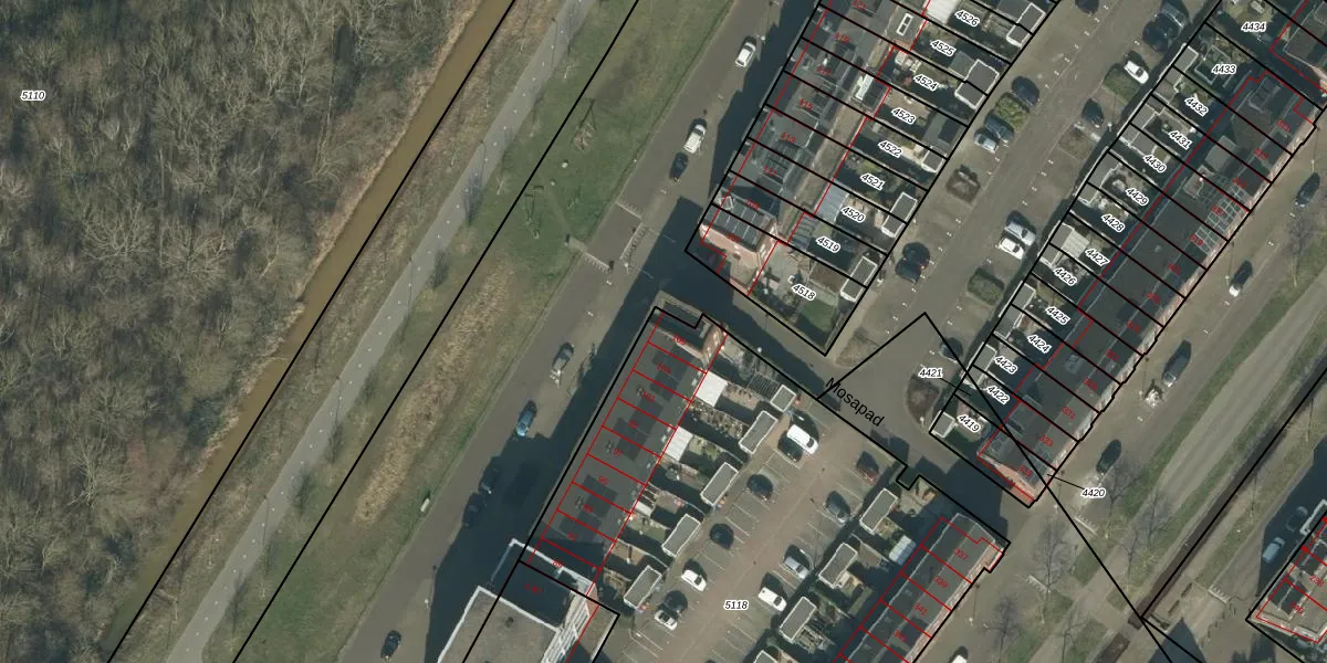Mosasingel 105 is gelegen op kadastraal perceel RML00I5118. Deze kadastrale aanduiding is uniek en wordt gebruikt door het Kadaster om eigendomsrechten en andere zakelijke rechten vast te leggen. Het perceel maakt onderdeel uit van de kadastrale gemeente Rosmalen.