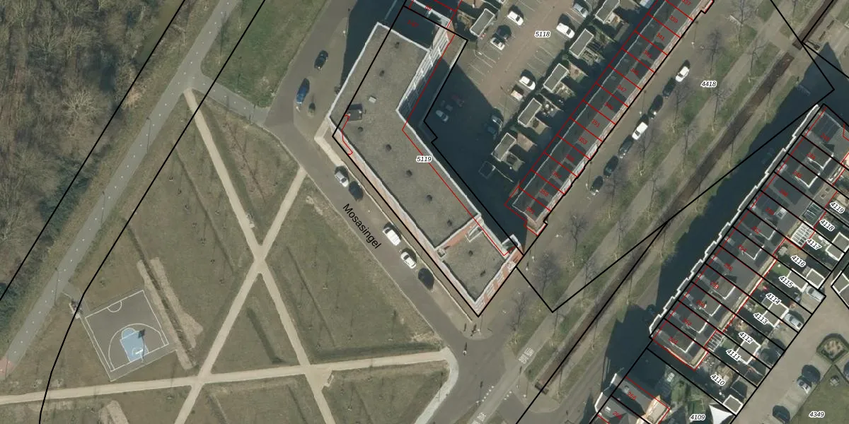 Mosasingel 47 is gelegen op kadastraal perceel RML00I5119. Deze kadastrale aanduiding is uniek en wordt gebruikt door het Kadaster om eigendomsrechten en andere zakelijke rechten vast te leggen. Het perceel maakt onderdeel uit van de kadastrale gemeente Rosmalen.