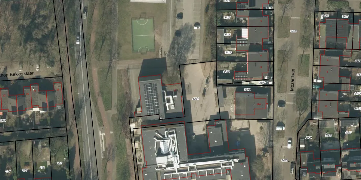 Het perceel waarop Mozartlaan 13 staat heeft een oppervlakte van 2,9 ha. Dit is een zeer groot perceel. De perceeloppervlakte wordt geregistreerd door het Kadaster. Gedetailleerde informatie over de maten van dit perceel kunt u vinden in het rapport Kadastrale kaart met maatvoering van Mozartlaan 13.