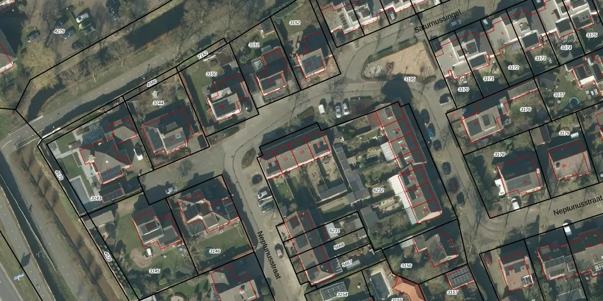 Het perceel waarop Neptunusstraat 13 staat heeft een oppervlakte van 2068 m². Dit is een zeer groot perceel. De perceeloppervlakte wordt geregistreerd door het Kadaster. Gedetailleerde informatie over de maten van dit perceel kunt u vinden in het rapport Kadastrale kaart met maatvoering van Neptunusstraat 13.