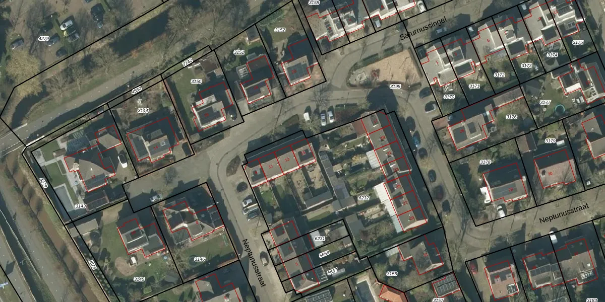 Het perceel waarop Neptunusstraat 15 staat heeft een oppervlakte van 2068 m². Dit is een zeer groot perceel. De perceeloppervlakte wordt geregistreerd door het Kadaster. Gedetailleerde informatie over de maten van dit perceel kunt u vinden in het rapport Kadastrale kaart met maatvoering van Neptunusstraat 15.