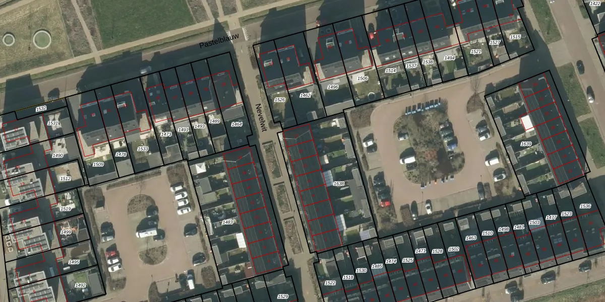 Het perceel waarop Nevelwit 15 staat heeft een oppervlakte van 985 m². Dit is een groot perceel. De perceeloppervlakte wordt geregistreerd door het Kadaster. Gedetailleerde informatie over de maten van dit perceel kunt u vinden in het rapport Kadastrale kaart met maatvoering van Nevelwit 15.