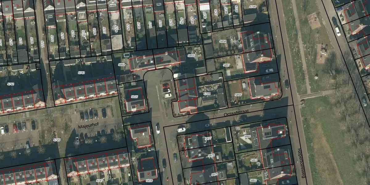 Het perceel waarop Octaafstraat 41 staat heeft een oppervlakte van 550 m². Dit is een groot perceel. De perceeloppervlakte wordt geregistreerd door het Kadaster. Gedetailleerde informatie over de maten van dit perceel kunt u vinden in het rapport Kadastrale kaart met maatvoering van Octaafstraat 41.