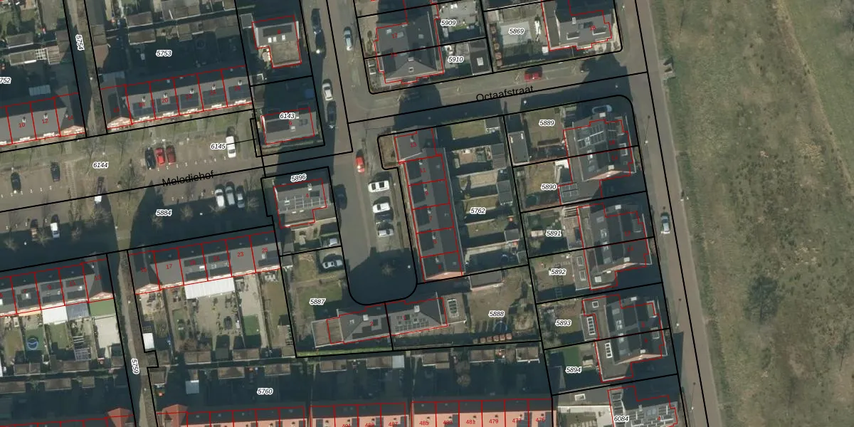 Het perceel waarop Octaafstraat 7 staat heeft een oppervlakte van 970 m². Dit is een groot perceel. De perceeloppervlakte wordt geregistreerd door het Kadaster. Gedetailleerde informatie over de maten van dit perceel kunt u vinden in het rapport Kadastrale kaart met maatvoering van Octaafstraat 7.