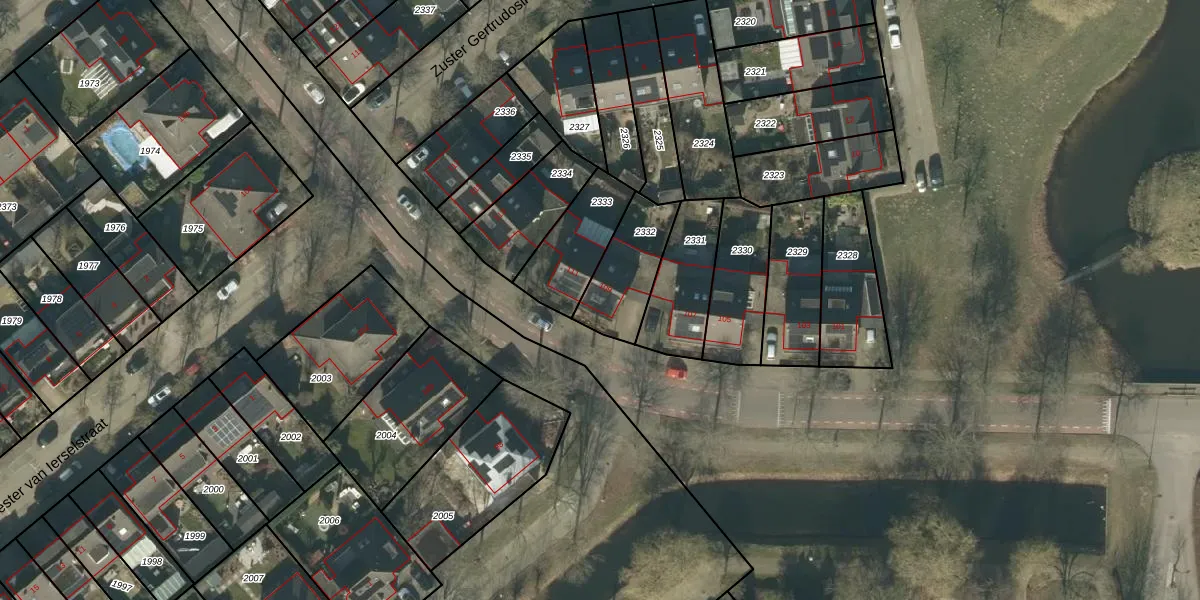 Gebruik de zoekbalk of klik op een perceel voor informatie over de adressen binnen dit perceel.
