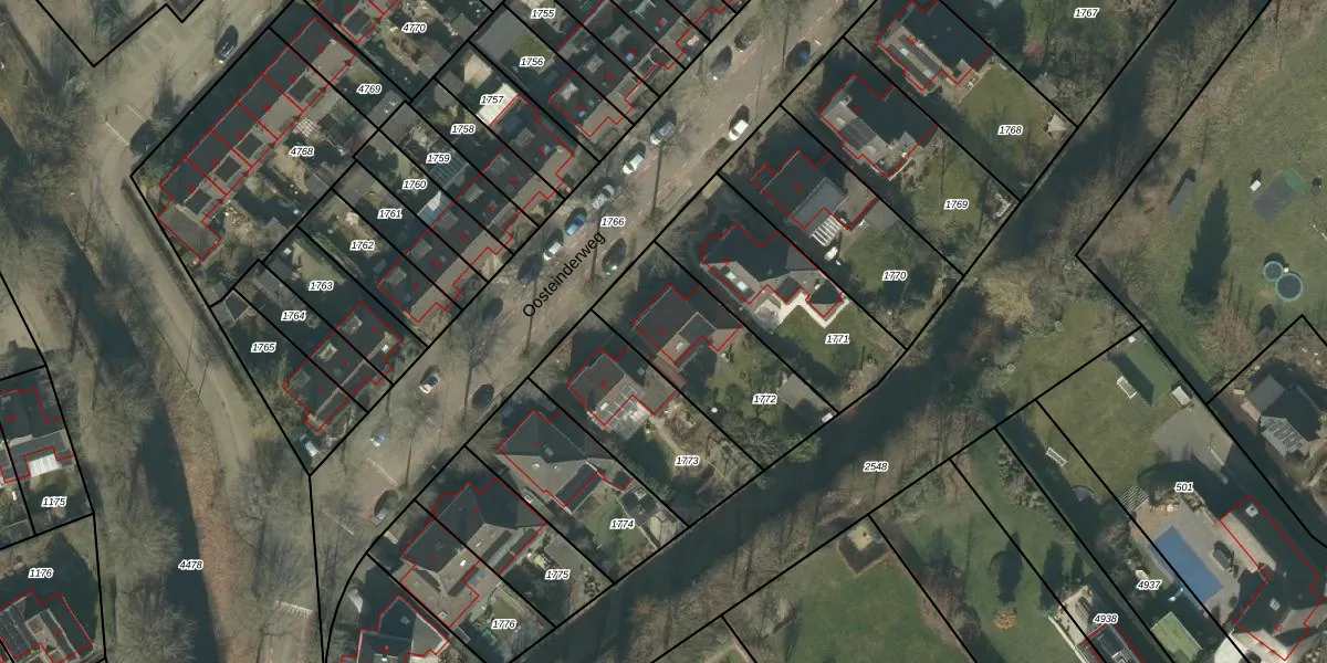 Gebruik de zoekbalk of klik op een perceel voor informatie over de adressen binnen dit perceel.