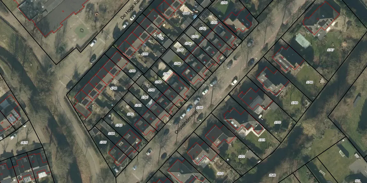 Oosteinderweg 18 is gelegen op kadastraal perceel RML00I1757. Deze kadastrale aanduiding is uniek en wordt gebruikt door het Kadaster om eigendomsrechten en andere zakelijke rechten vast te leggen. Het perceel maakt onderdeel uit van de kadastrale gemeente Rosmalen.