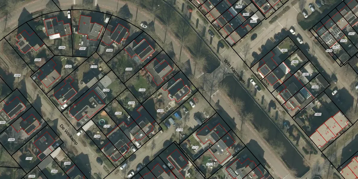 Gebruik de zoekbalk of klik op een perceel voor informatie over de adressen binnen dit perceel.