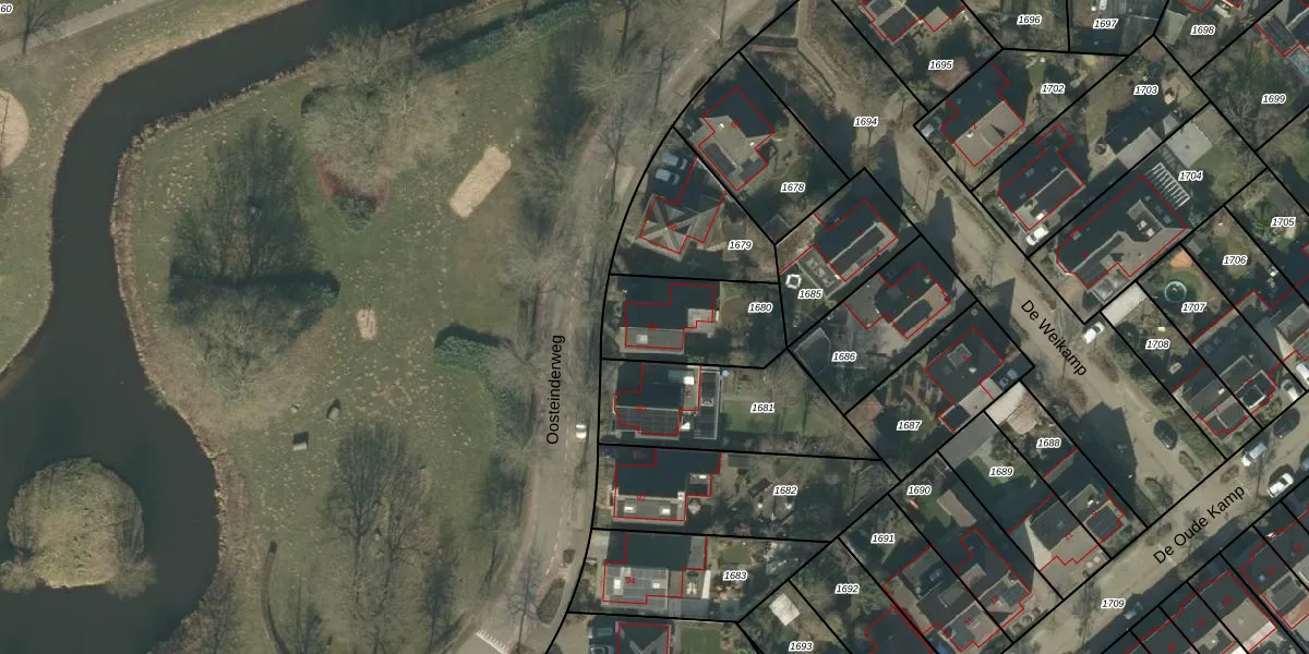Gebruik de zoekbalk of klik op een perceel voor informatie over de adressen binnen dit perceel.