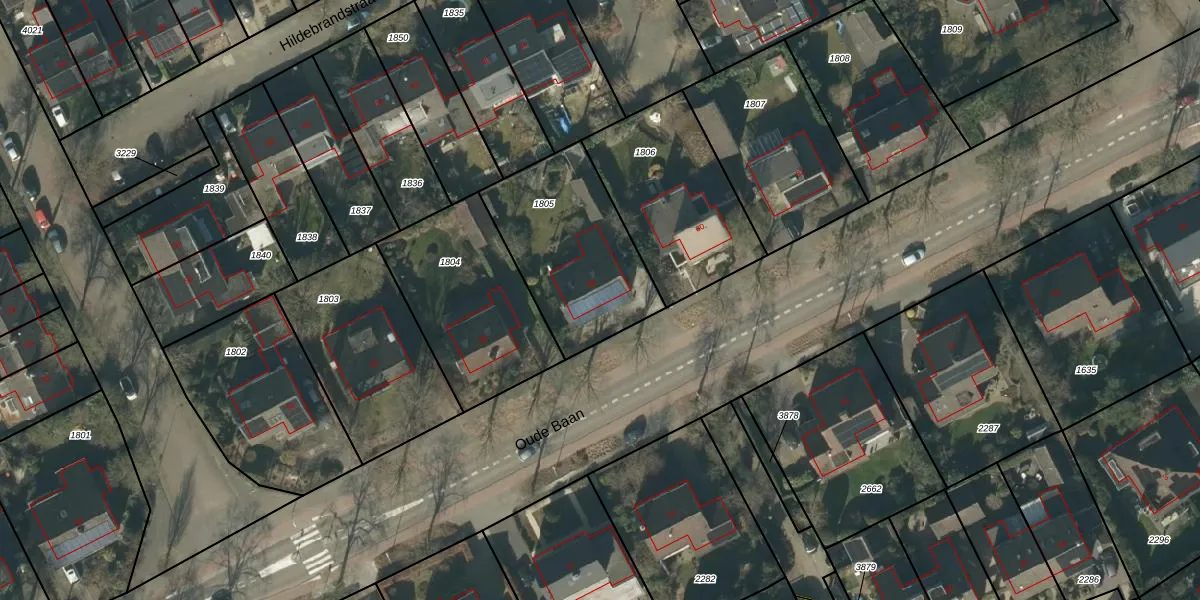 Het perceel waarop Oude Baan 58 staat heeft een oppervlakte van 599 m². Dit is een groot perceel. De perceeloppervlakte wordt geregistreerd door het Kadaster. Gedetailleerde informatie over de maten van dit perceel kunt u vinden in het rapport Kadastrale kaart met maatvoering van Oude Baan 58.