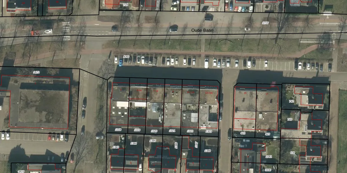 Het perceel waarop Oude Baan 9 staat heeft een oppervlakte van 324 m². Dit is een groot perceel. De perceeloppervlakte wordt geregistreerd door het Kadaster. Gedetailleerde informatie over de maten van dit perceel kunt u vinden in het rapport Kadastrale kaart met maatvoering van Oude Baan 9.