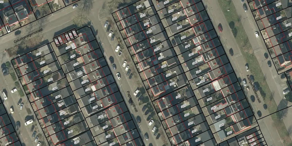 Het perceel waarop Papaverstraat 19 staat heeft een oppervlakte van 182 m². Dit is een middelgroot perceel. De perceeloppervlakte wordt geregistreerd door het Kadaster. Gedetailleerde informatie over de maten van dit perceel kunt u vinden in het rapport Kadastrale kaart met maatvoering van Papaverstraat 19.
