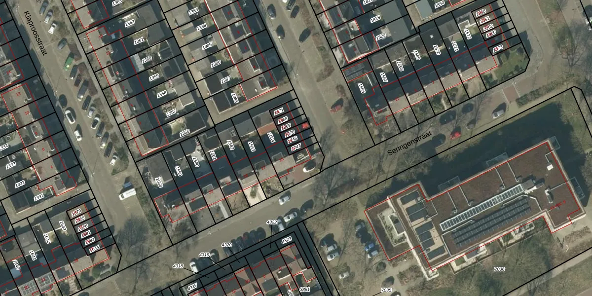 Gebruik de zoekbalk of klik op een perceel voor informatie over de adressen binnen dit perceel.