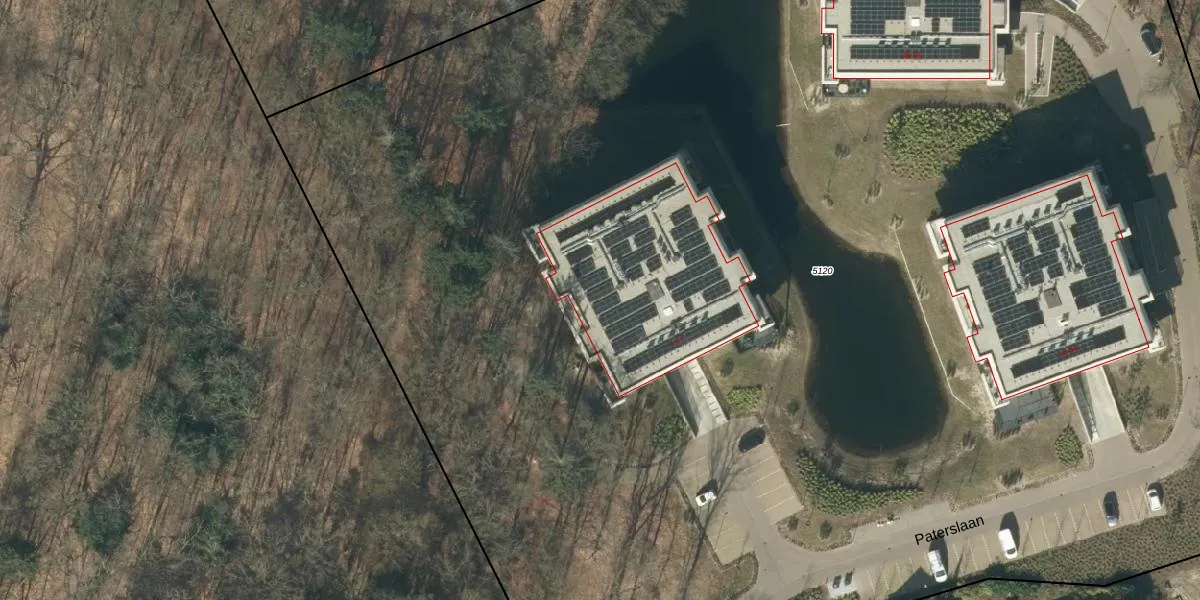 Het perceel waarop Paterslaan 10 staat heeft een oppervlakte van 1,7 ha. Dit is een zeer groot perceel. De perceeloppervlakte wordt geregistreerd door het Kadaster. Gedetailleerde informatie over de maten van dit perceel kunt u vinden in het rapport Kadastrale kaart met maatvoering van Paterslaan 10.