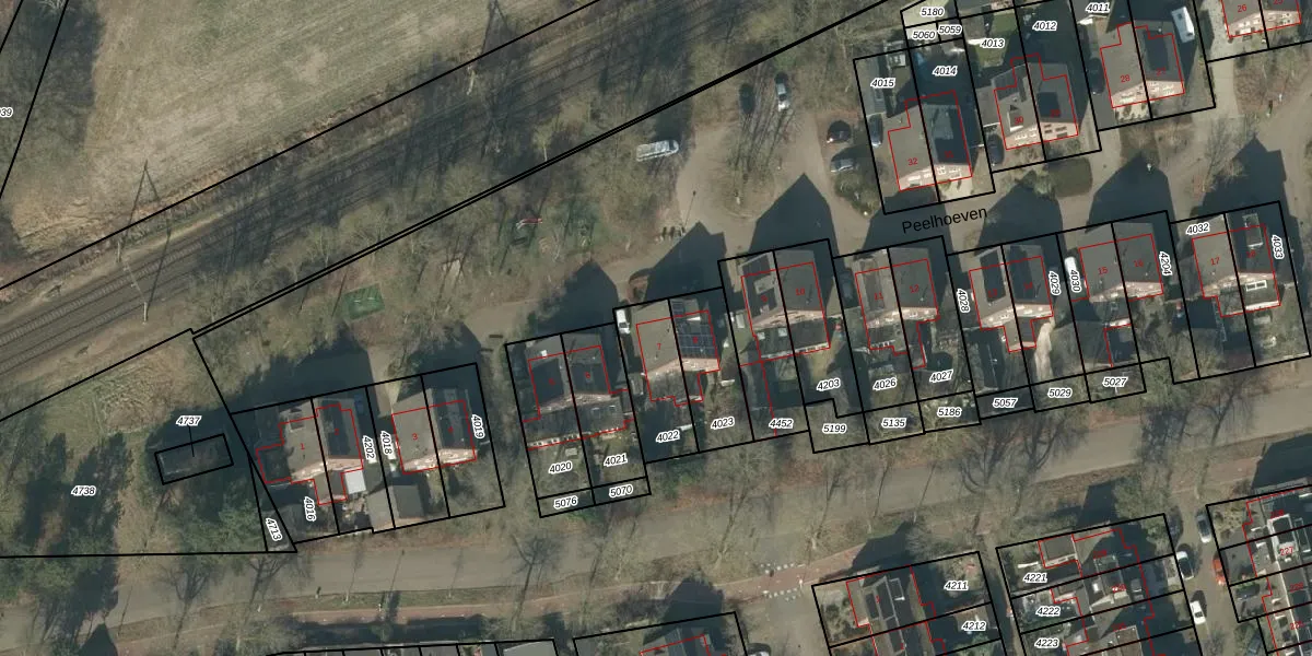 Het perceel waarop Peelhoeven 7 staat heeft een oppervlakte van 206 m². Dit is een middelgroot perceel. De perceeloppervlakte wordt geregistreerd door het Kadaster. Gedetailleerde informatie over de maten van dit perceel kunt u vinden in het rapport Kadastrale kaart met maatvoering van Peelhoeven 7.