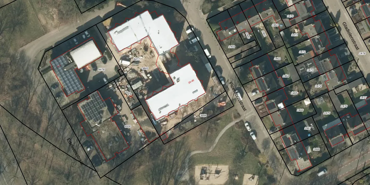 Het perceel waarop Pioenroosstraat 48 staat heeft een oppervlakte van 2823 m². Dit is een zeer groot perceel. De perceeloppervlakte wordt geregistreerd door het Kadaster. Gedetailleerde informatie over de maten van dit perceel kunt u vinden in het rapport Kadastrale kaart met maatvoering van Pioenroosstraat 48.