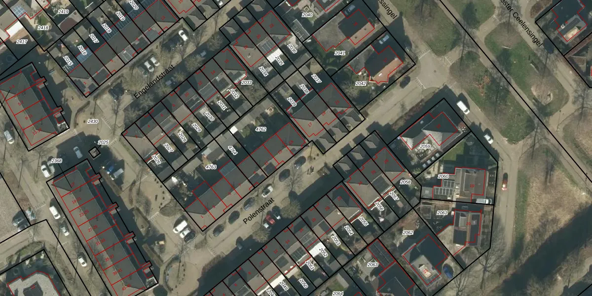 Het perceel waarop Polenstraat 15 staat heeft een oppervlakte van 394 m². Dit is een groot perceel. De perceeloppervlakte wordt geregistreerd door het Kadaster. Gedetailleerde informatie over de maten van dit perceel kunt u vinden in het rapport Kadastrale kaart met maatvoering van Polenstraat 15.