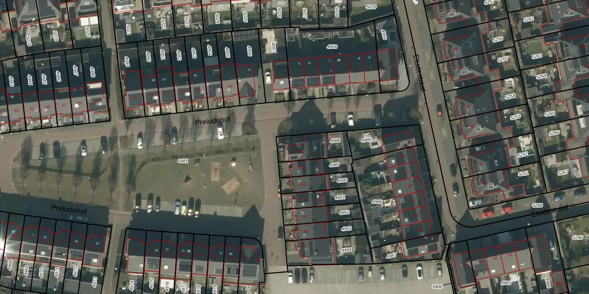 Het perceel waarop Preludehof 105 staat heeft een oppervlakte van 213 m². Dit is een middelgroot perceel. De perceeloppervlakte wordt geregistreerd door het Kadaster. Gedetailleerde informatie over de maten van dit perceel kunt u vinden in het rapport Kadastrale kaart met maatvoering van Preludehof 105.