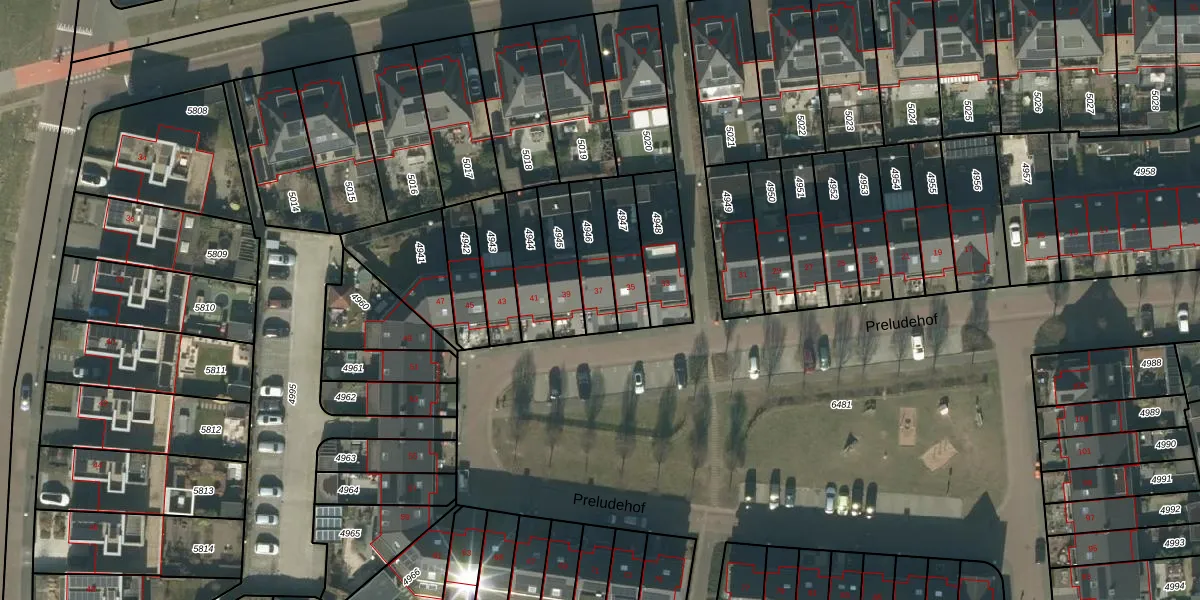 Gebruik de zoekbalk of klik op een perceel voor informatie over de adressen binnen dit perceel.
