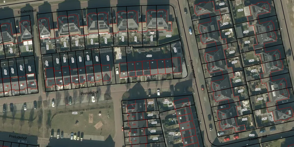 Het perceel waarop Preludehof 9 staat heeft een oppervlakte van 726 m². Dit is een groot perceel. De perceeloppervlakte wordt geregistreerd door het Kadaster. Gedetailleerde informatie over de maten van dit perceel kunt u vinden in het rapport Kadastrale kaart met maatvoering van Preludehof 9.