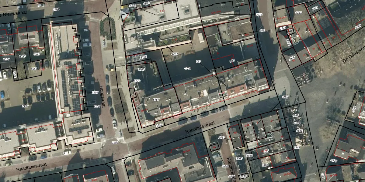 Het perceel waarop Raadhuisstraat 1-B staat heeft een oppervlakte van 1060 m². Dit is een zeer groot perceel. De perceeloppervlakte wordt geregistreerd door het Kadaster. Gedetailleerde informatie over de maten van dit perceel kunt u vinden in het rapport Kadastrale kaart met maatvoering van Raadhuisstraat 1-B.