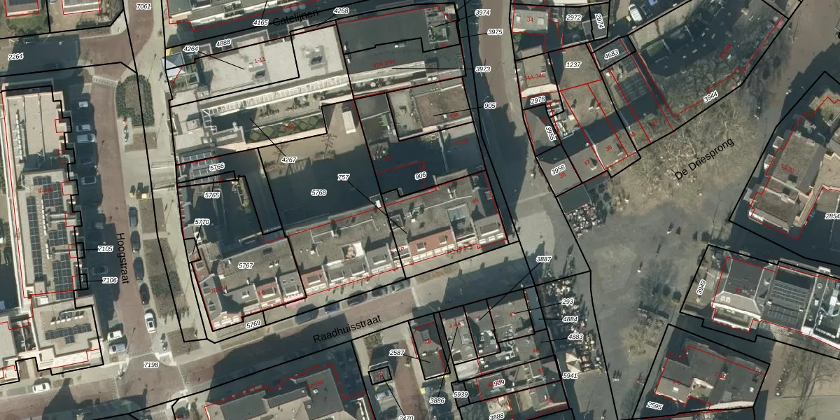 Het perceel waarop Raadhuisstraat 1-N staat heeft een oppervlakte van 495 m². Dit is een groot perceel. De perceeloppervlakte wordt geregistreerd door het Kadaster. Gedetailleerde informatie over de maten van dit perceel kunt u vinden in het rapport Kadastrale kaart met maatvoering van Raadhuisstraat 1-N.