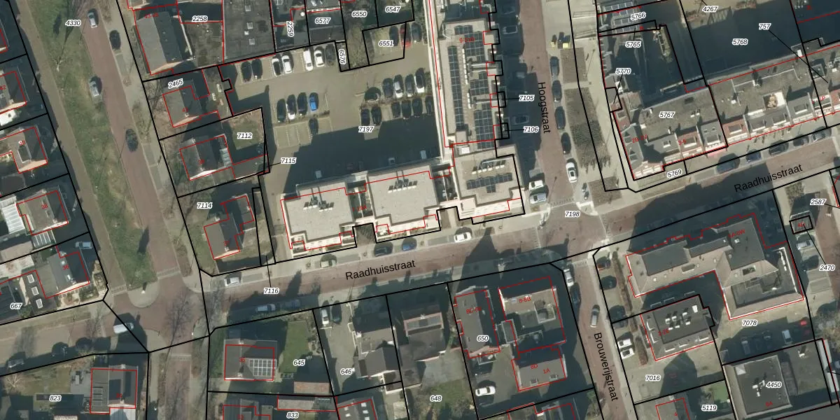 Het perceel waarop Raadhuisstraat 7 staat heeft een oppervlakte van 3128 m². Dit is een zeer groot perceel. De perceeloppervlakte wordt geregistreerd door het Kadaster. Gedetailleerde informatie over de maten van dit perceel kunt u vinden in het rapport Kadastrale kaart met maatvoering van Raadhuisstraat 7.