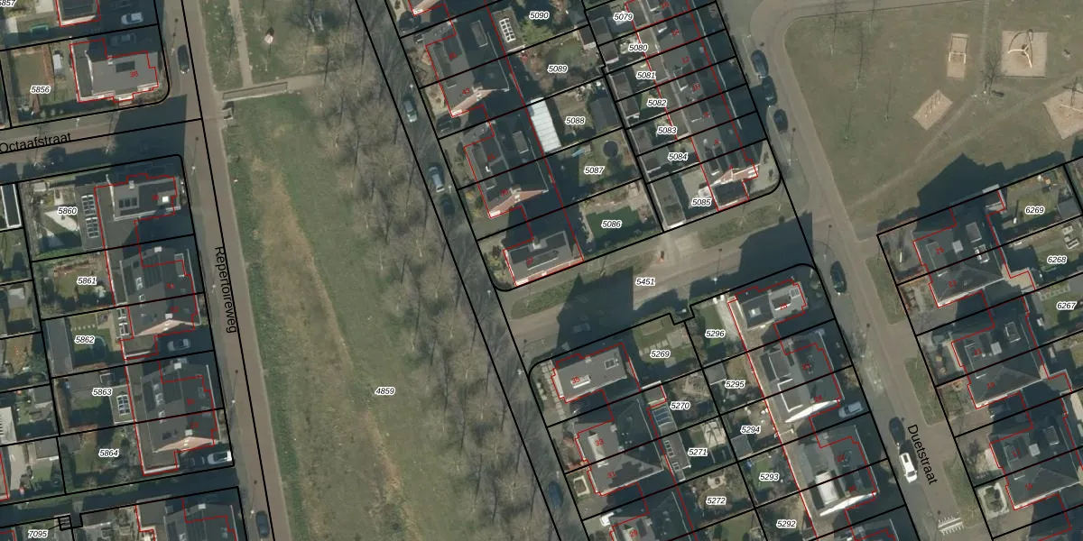 Het perceel waarop Rapsodieweg 37 staat heeft een oppervlakte van 353 m². Dit is een groot perceel. De perceeloppervlakte wordt geregistreerd door het Kadaster. Gedetailleerde informatie over de maten van dit perceel kunt u vinden in het rapport Kadastrale kaart met maatvoering van Rapsodieweg 37.