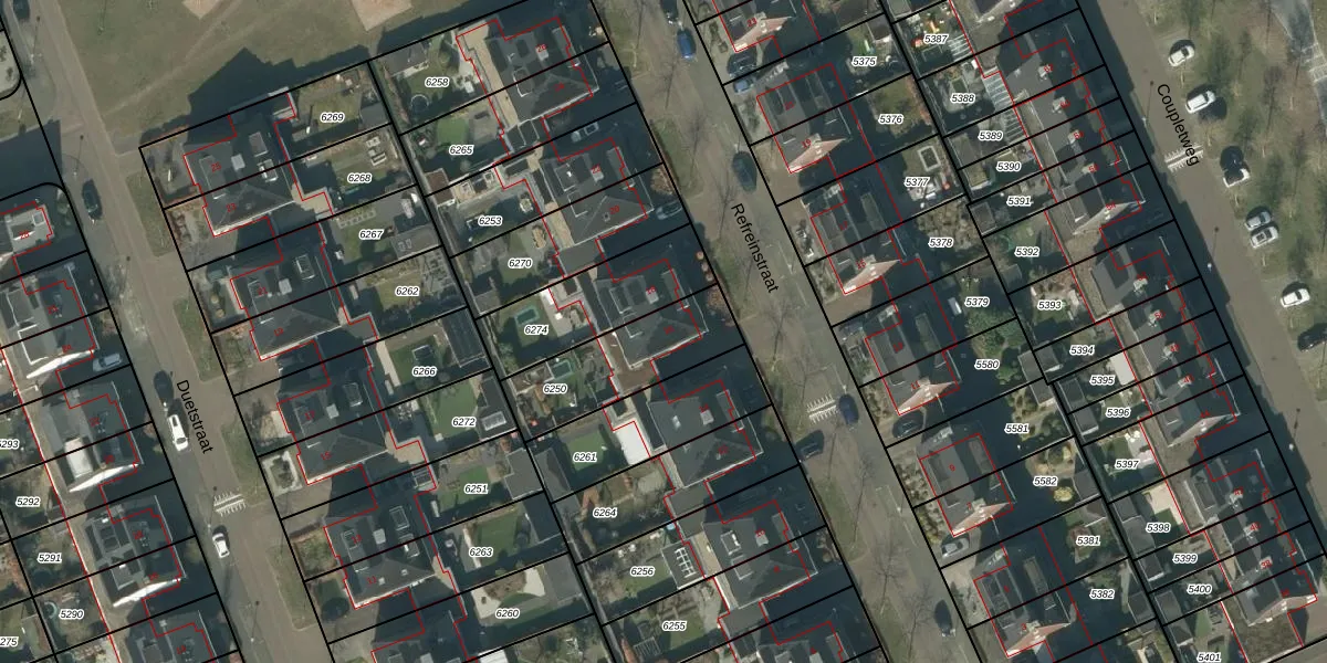 Gebruik de zoekbalk of klik op een perceel voor informatie over de adressen binnen dit perceel.