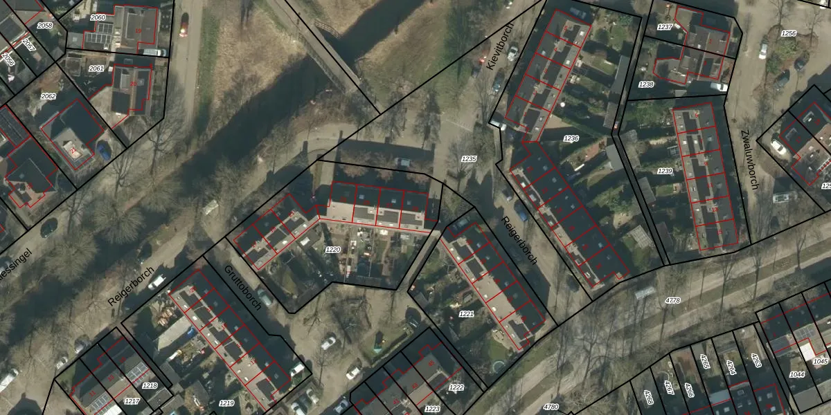 Het perceel waarop Reigerborch 29 staat heeft een oppervlakte van 1220 m². Dit is een zeer groot perceel. De perceeloppervlakte wordt geregistreerd door het Kadaster. Gedetailleerde informatie over de maten van dit perceel kunt u vinden in het rapport Kadastrale kaart met maatvoering van Reigerborch 29.
