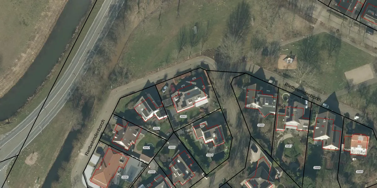 Gebruik de zoekbalk of klik op een perceel voor informatie over de adressen binnen dit perceel.