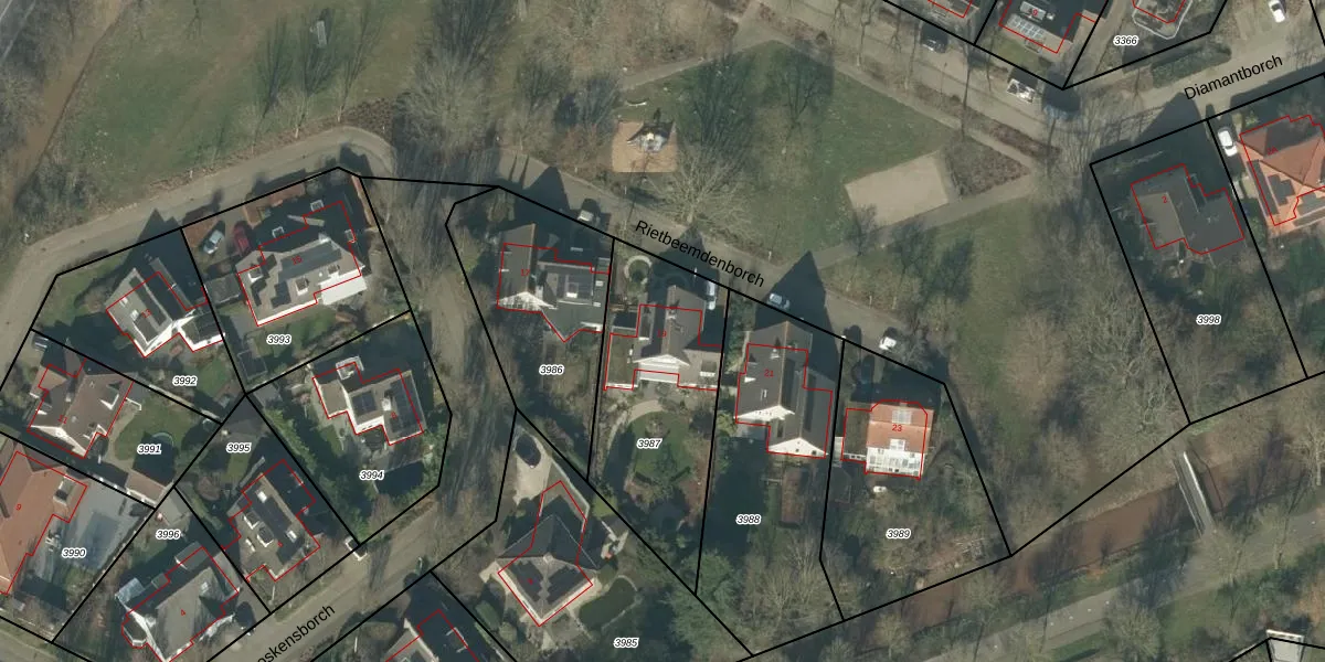 Het perceel waarop Rietbeemdenborch 19 staat heeft een oppervlakte van 760 m². Dit is een groot perceel. De perceeloppervlakte wordt geregistreerd door het Kadaster. Gedetailleerde informatie over de maten van dit perceel kunt u vinden in het rapport Kadastrale kaart met maatvoering van Rietbeemdenborch 19.