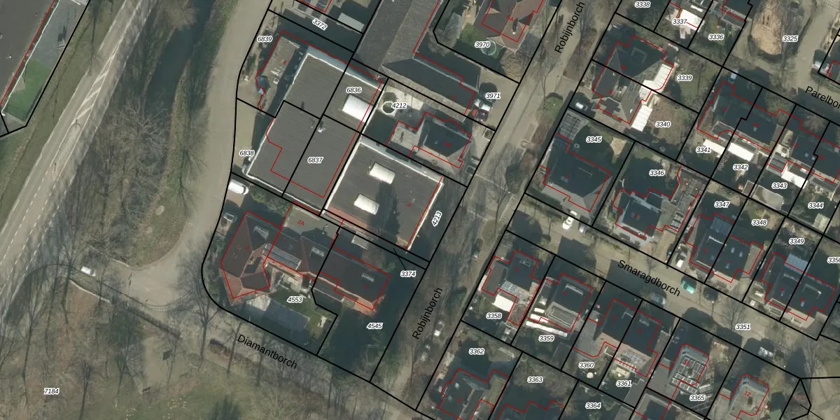 Het perceel waarop Robijnborch 3 staat heeft een oppervlakte van 570 m². Dit is een groot perceel. De perceeloppervlakte wordt geregistreerd door het Kadaster. Gedetailleerde informatie over de maten van dit perceel kunt u vinden in het rapport Kadastrale kaart met maatvoering van Robijnborch 3.