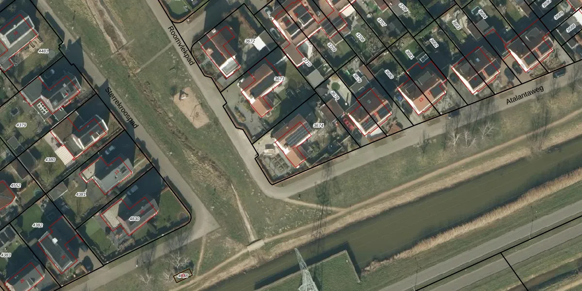 Het perceel waarop Roomvlekpad 10 staat heeft een oppervlakte van 606 m². Dit is een groot perceel. De perceeloppervlakte wordt geregistreerd door het Kadaster. Gedetailleerde informatie over de maten van dit perceel kunt u vinden in het rapport Kadastrale kaart met maatvoering van Roomvlekpad 10.