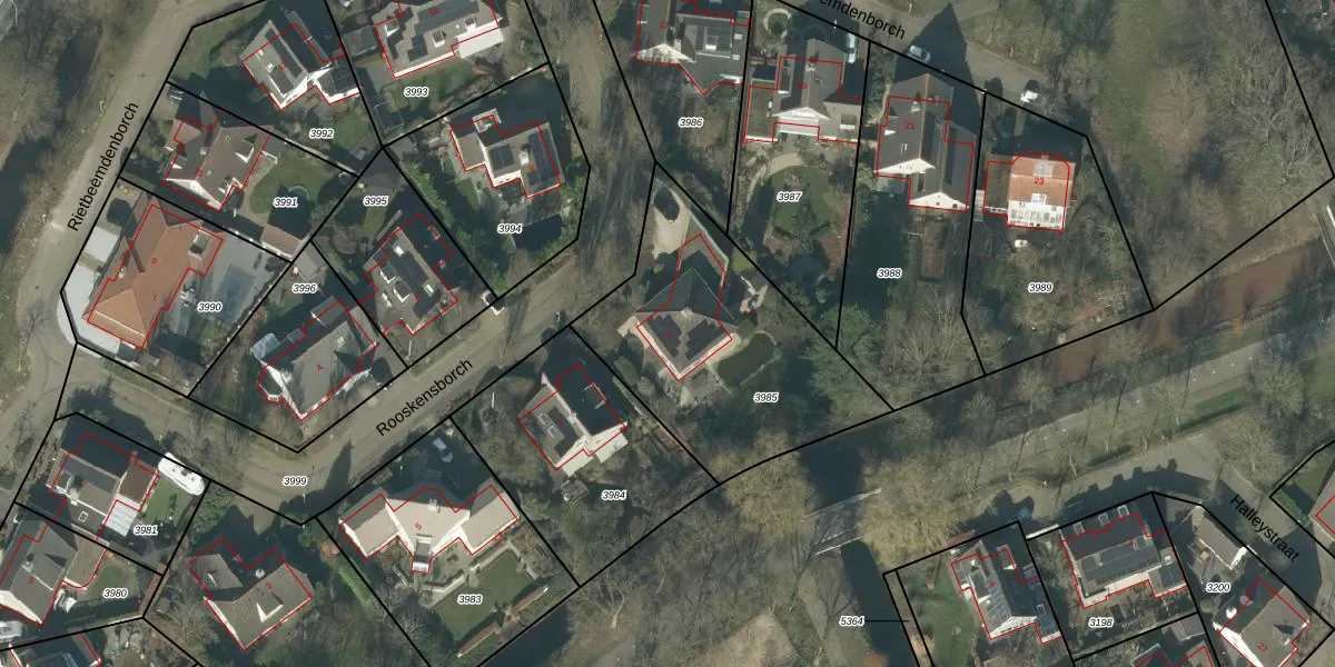 Gebruik de zoekbalk of klik op een perceel voor informatie over de adressen binnen dit perceel.