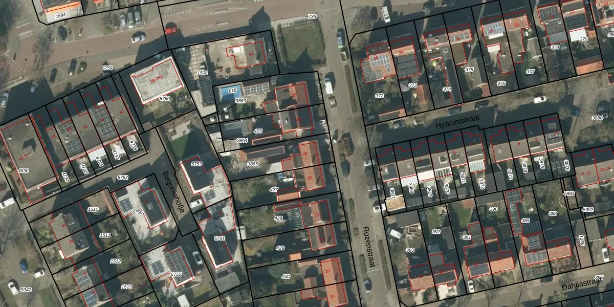 Het perceel waarop Rozenstraat 28 staat heeft een oppervlakte van 353 m². Dit is een groot perceel. De perceeloppervlakte wordt geregistreerd door het Kadaster. Gedetailleerde informatie over de maten van dit perceel kunt u vinden in het rapport Kadastrale kaart met maatvoering van Rozenstraat 28.