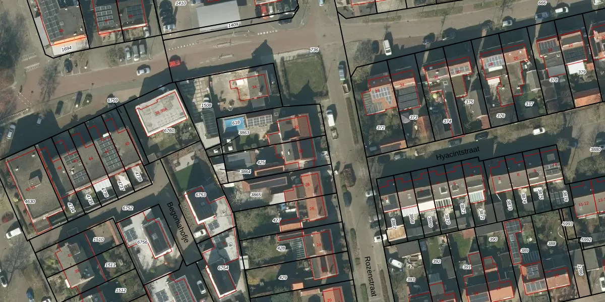 Het perceel waarop Rozenstraat 30 staat heeft een oppervlakte van 335 m². Dit is een groot perceel. De perceeloppervlakte wordt geregistreerd door het Kadaster. Gedetailleerde informatie over de maten van dit perceel kunt u vinden in het rapport Kadastrale kaart met maatvoering van Rozenstraat 30.