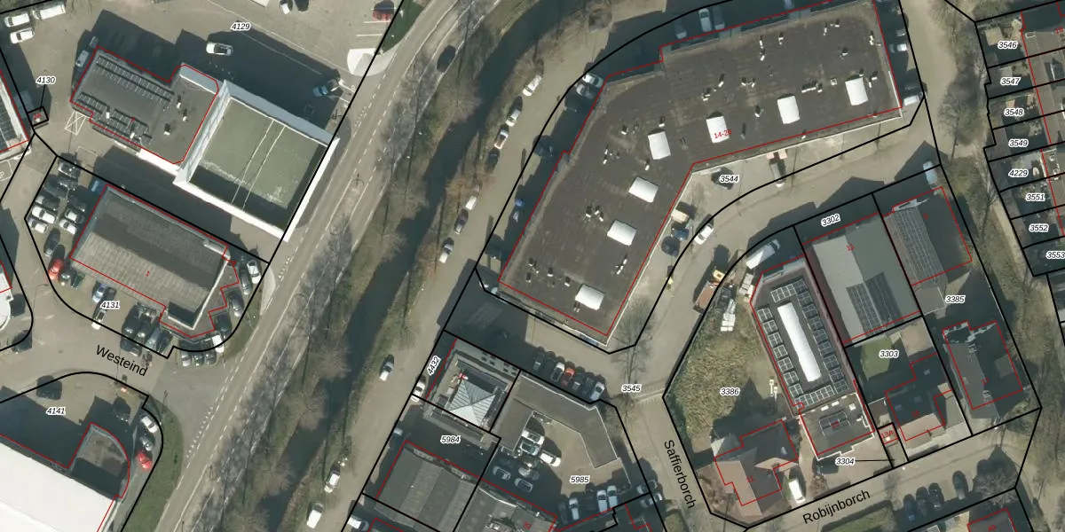 Het perceel waarop Saffierborch 14 staat heeft een oppervlakte van 3083 m². Dit is een zeer groot perceel. De perceeloppervlakte wordt geregistreerd door het Kadaster. Gedetailleerde informatie over de maten van dit perceel kunt u vinden in het rapport Kadastrale kaart met maatvoering van Saffierborch 14.