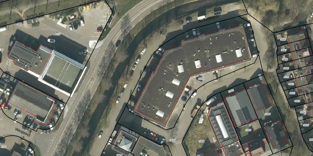 Het perceel waarop Saffierborch 16 staat heeft een oppervlakte van 3083 m². Dit is een zeer groot perceel. De perceeloppervlakte wordt geregistreerd door het Kadaster. Gedetailleerde informatie over de maten van dit perceel kunt u vinden in het rapport Kadastrale kaart met maatvoering van Saffierborch 16.