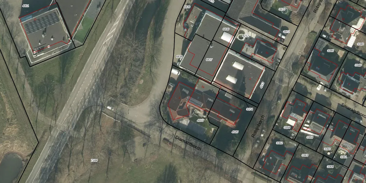 Het perceel waarop Saffierborch 2 staat heeft een oppervlakte van 881 m². Dit is een groot perceel. De perceeloppervlakte wordt geregistreerd door het Kadaster. Gedetailleerde informatie over de maten van dit perceel kunt u vinden in het rapport Kadastrale kaart met maatvoering van Saffierborch 2.