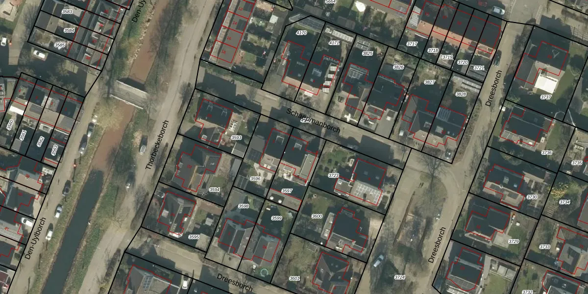 Het perceel waarop Schaepmanborch 3 staat heeft een oppervlakte van 315 m². Dit is een groot perceel. De perceeloppervlakte wordt geregistreerd door het Kadaster. Gedetailleerde informatie over de maten van dit perceel kunt u vinden in het rapport Kadastrale kaart met maatvoering van Schaepmanborch 3.
