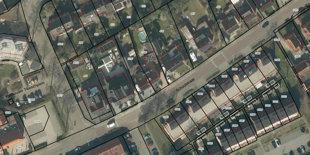 Het perceel waarop Schoolstraat 34-D staat heeft een oppervlakte van 500 m². Dit is een groot perceel. De perceeloppervlakte wordt geregistreerd door het Kadaster. Gedetailleerde informatie over de maten van dit perceel kunt u vinden in het rapport Kadastrale kaart met maatvoering van Schoolstraat 34-D.