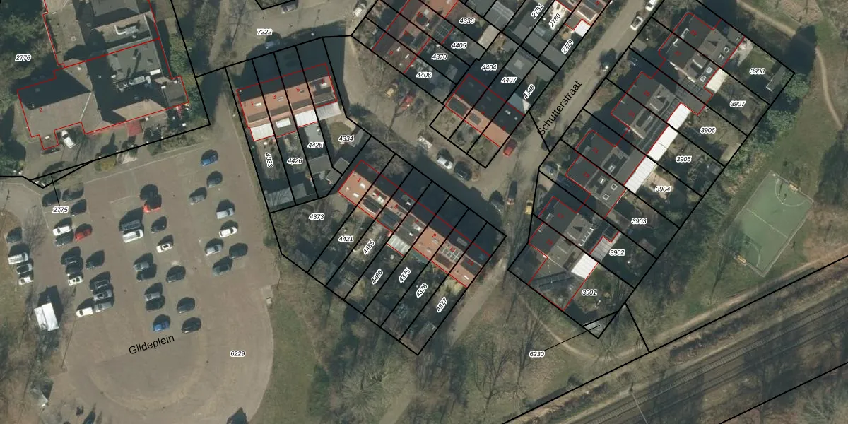 Gebruik de zoekbalk of klik op een perceel voor informatie over de adressen binnen dit perceel.