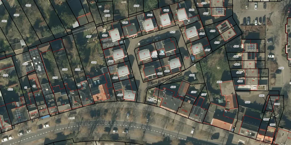 Sint-Anthoniusstraat 1 is gelegen op kadastraal perceel RML00E4353. Deze kadastrale aanduiding is uniek en wordt gebruikt door het Kadaster om eigendomsrechten en andere zakelijke rechten vast te leggen. Het perceel maakt onderdeel uit van de kadastrale gemeente Rosmalen.