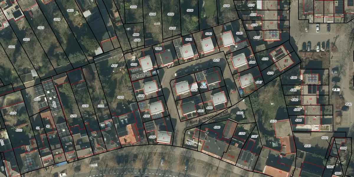 Sint-Anthoniusstraat 3 is gelegen op kadastraal perceel RML00E4352. Deze kadastrale aanduiding is uniek en wordt gebruikt door het Kadaster om eigendomsrechten en andere zakelijke rechten vast te leggen. Het perceel maakt onderdeel uit van de kadastrale gemeente Rosmalen.
