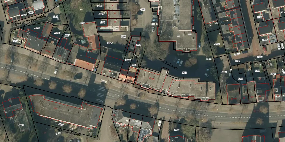Sint Jorisstate 5 is gelegen op kadastraal perceel RML00E4543. Deze kadastrale aanduiding is uniek en wordt gebruikt door het Kadaster om eigendomsrechten en andere zakelijke rechten vast te leggen. Het perceel maakt onderdeel uit van de kadastrale gemeente Rosmalen.