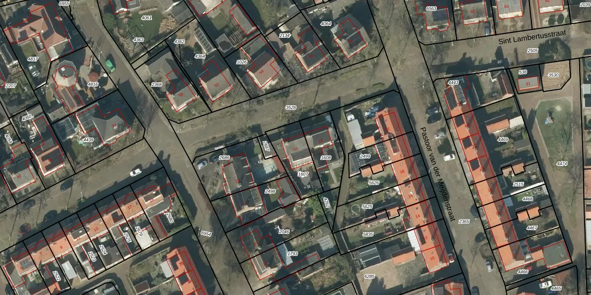 Het perceel waarop Sint Lambertusstraat 21 staat heeft een oppervlakte van 262 m². Dit is een middelgroot perceel. De perceeloppervlakte wordt geregistreerd door het Kadaster. Gedetailleerde informatie over de maten van dit perceel kunt u vinden in het rapport Kadastrale kaart met maatvoering van Sint Lambertusstraat 21.