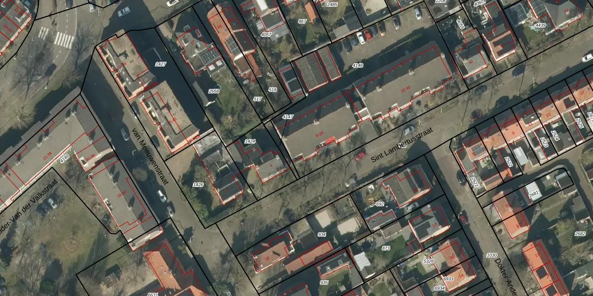Het perceel waarop Sint Lambertusstraat 6 staat heeft een oppervlakte van 2117 m². Dit is een zeer groot perceel. De perceeloppervlakte wordt geregistreerd door het Kadaster. Gedetailleerde informatie over de maten van dit perceel kunt u vinden in het rapport Kadastrale kaart met maatvoering van Sint Lambertusstraat 6.