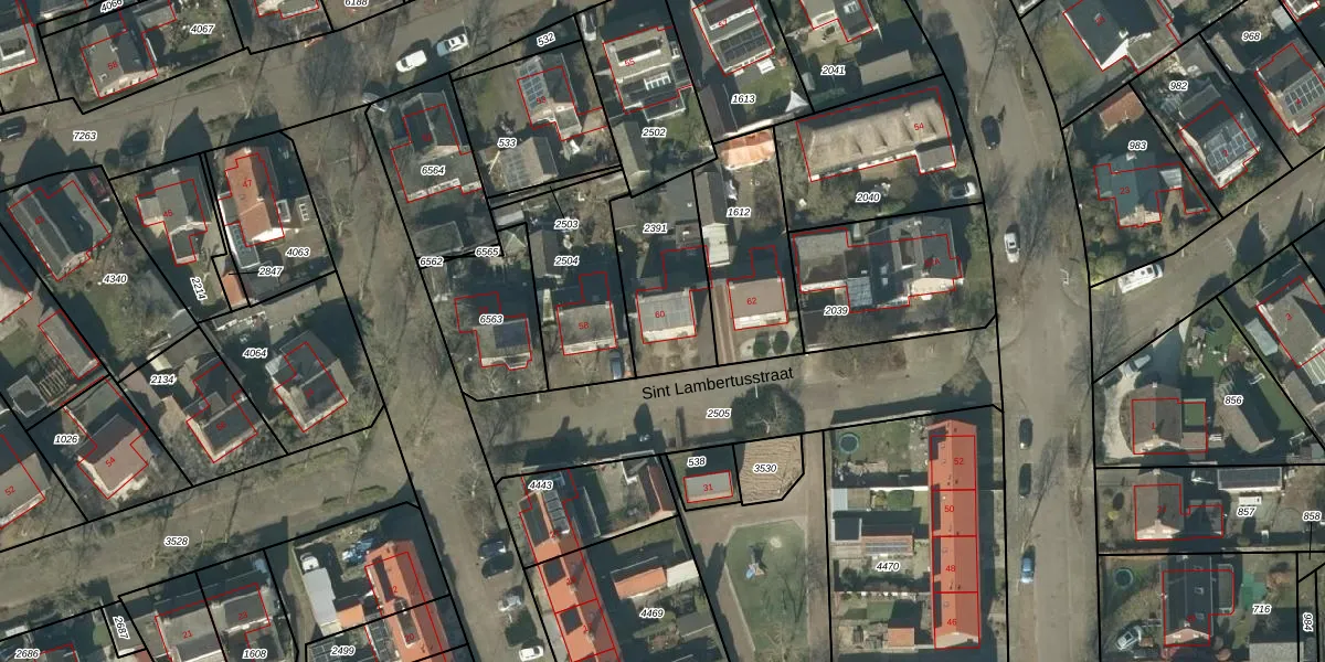 Het perceel waarop Sint Lambertusstraat 60 staat heeft een oppervlakte van 370 m². Dit is een groot perceel. De perceeloppervlakte wordt geregistreerd door het Kadaster. Gedetailleerde informatie over de maten van dit perceel kunt u vinden in het rapport Kadastrale kaart met maatvoering van Sint Lambertusstraat 60.